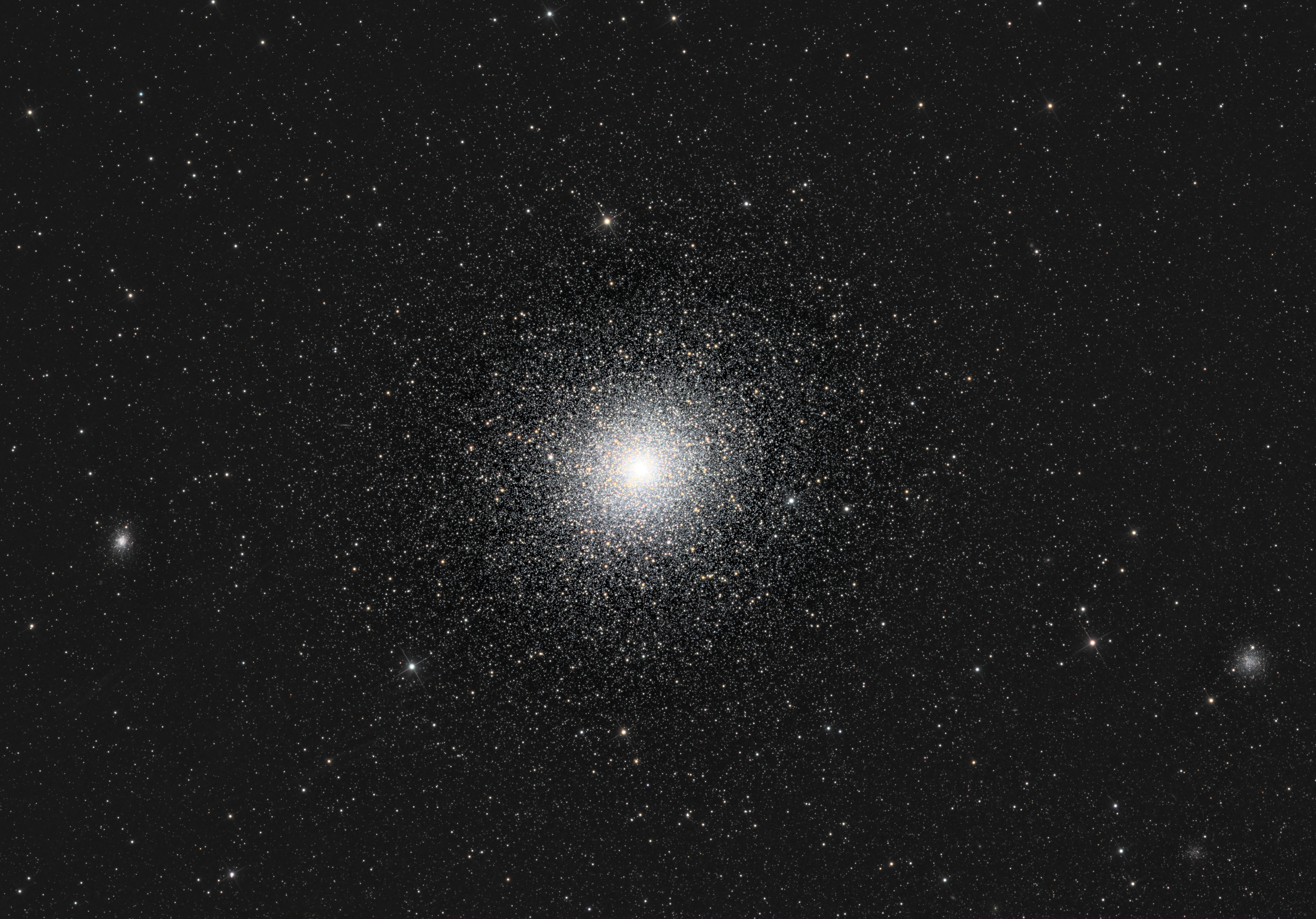 NGC 104 ist der zweithellste Kugelsternhaufen (nach Omega Centauri) und kann auf der Südhalbkugel bereits mit bloßem Auge beobachtet werden. Er steht nahe der Kleinen Magellanschen Wolke im Sternbild Tukan. Seine Entfernung zur Erde beträgt circa 15.000 Lichtjahre und wobei sein Durchmesser circa 120 Lichtjahre beträgt.