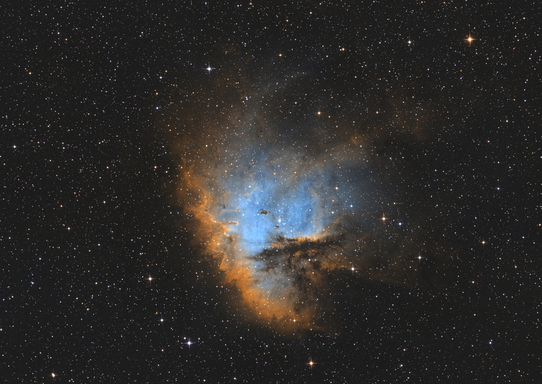 Belichtungszeit: 133x180" RGB; 144x120" L; 45x300"+99x180" Ha; 64x300" OIII (Gesamt: 25,5 Stunden)