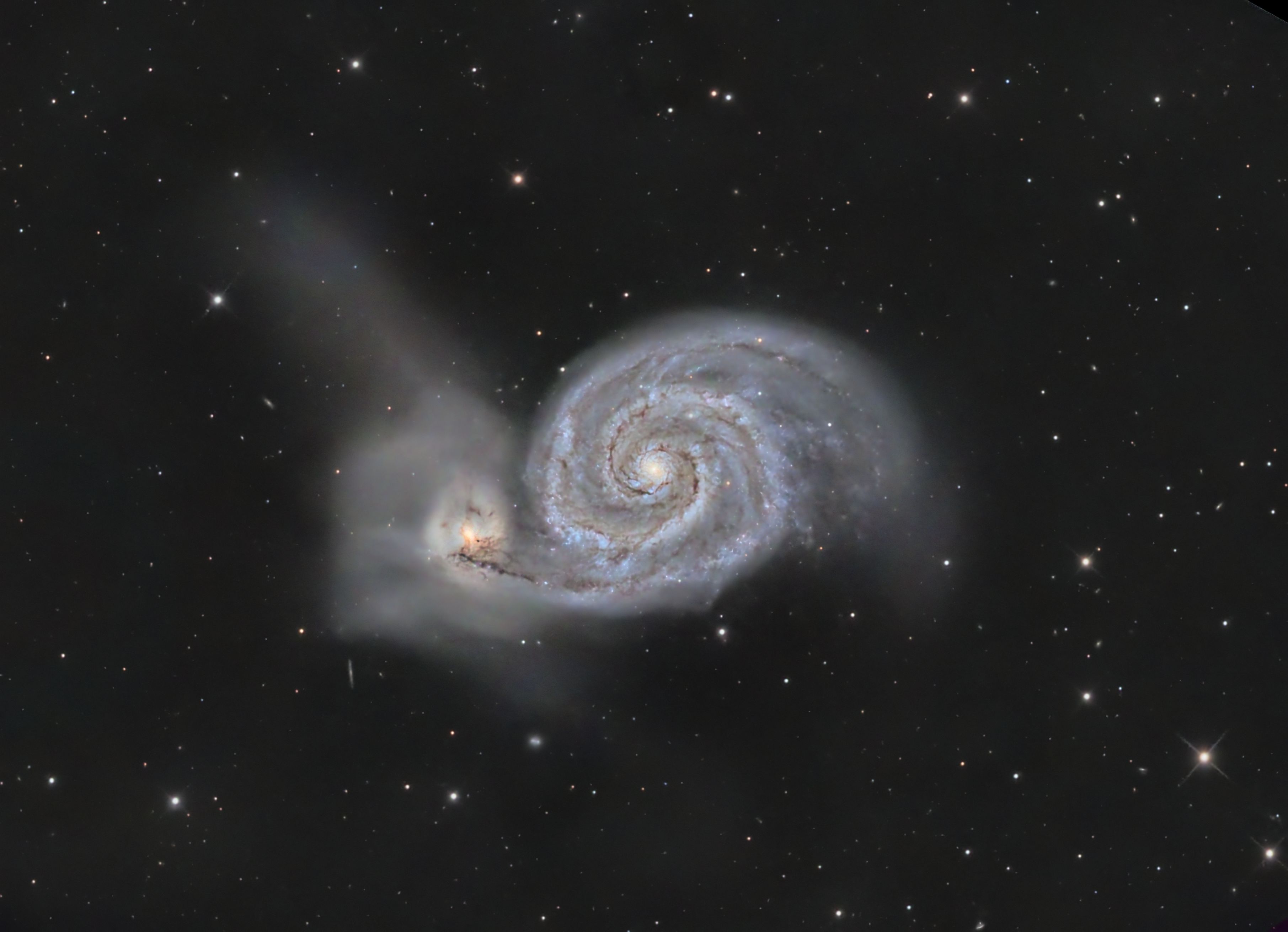 M 51 Summenbilder aus 2022 und 2023; Teleskope: RC 8" und newton 8"; Kamera ASI2600MM mit LRGB Filtern; Monteiugen EQ6R und CEM70; Nachbearbeitung in PI