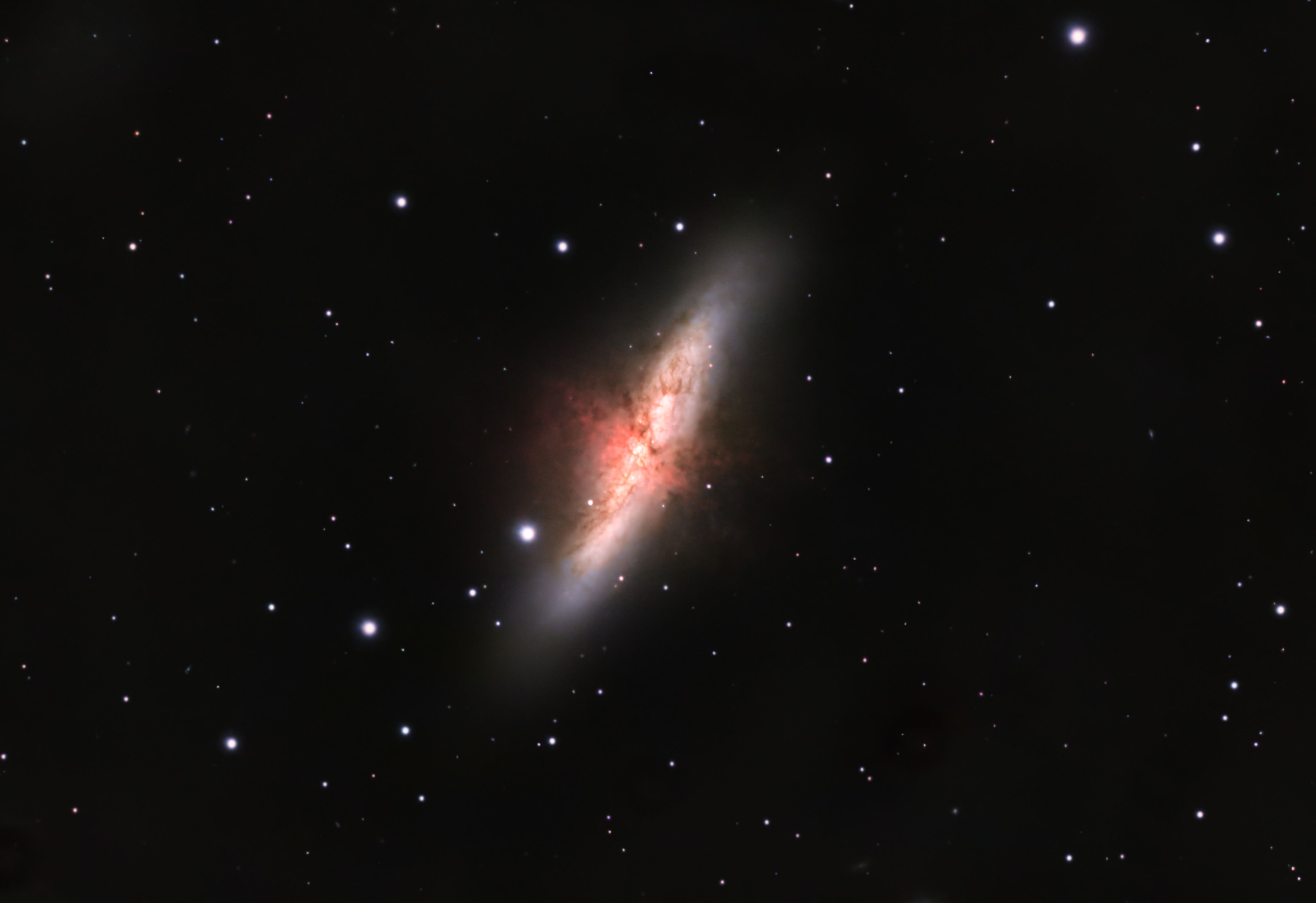 M 82 mit dem meade 10" SCT aufgenommen; Kamera ASI2600 MM mit LRGBHa; Summe ca 6h; Montierung CEM70; Nachbearbeitung mit PI